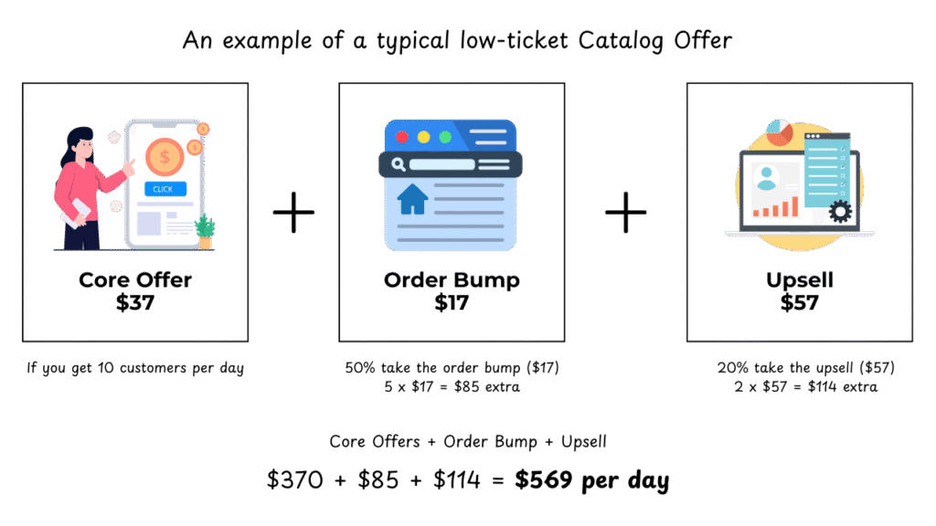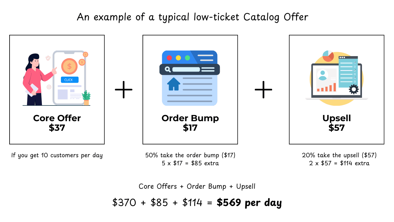 With a $37 core offer, plus a $17 order bump and a $57 upsell, here’s a simple example of what’s possible: